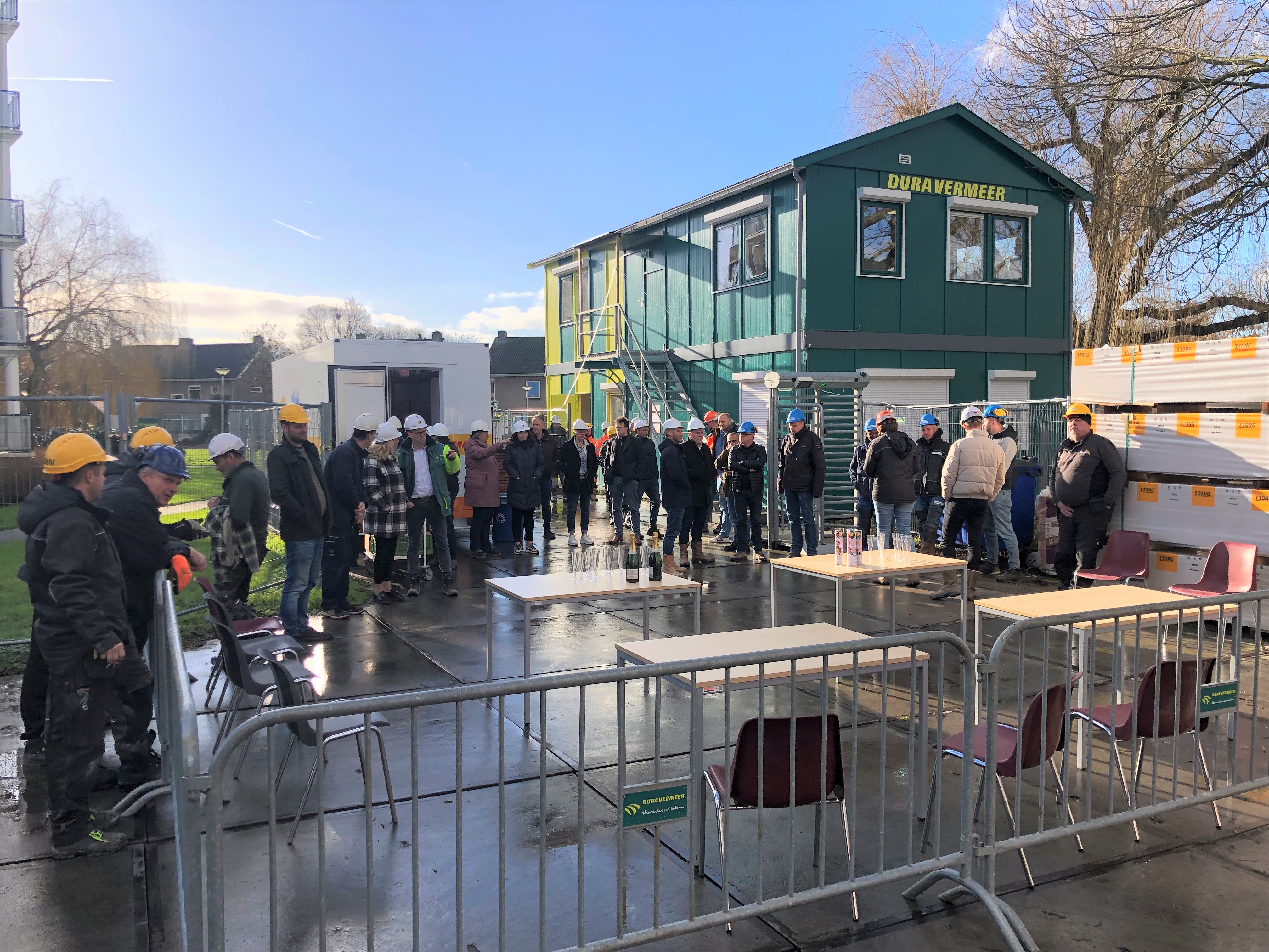 De nieuwbouw van Borgstede in Barendrecht heeft het hoogste punt bereikt. Met het bereiken van het dak van de dakvloer op ca 15,5 meter werd deze mijlpaal een feit. Vandaag wordt dit heugelijke moment gevierd op de bouwplaats met onder andere het uitvoerend personeel. Een traktatie van de snacktruck maakt het feest compleet. Samen wordt uitgekeken naar de komende maanden waarin de bouw en afbouw verder gaat. De eerste vleugel van de nieuwbouw is gereed in 2023 en zal dan in gebruik genomen worden. Het totale gebouw is naar verwachting in 2025 gereed.