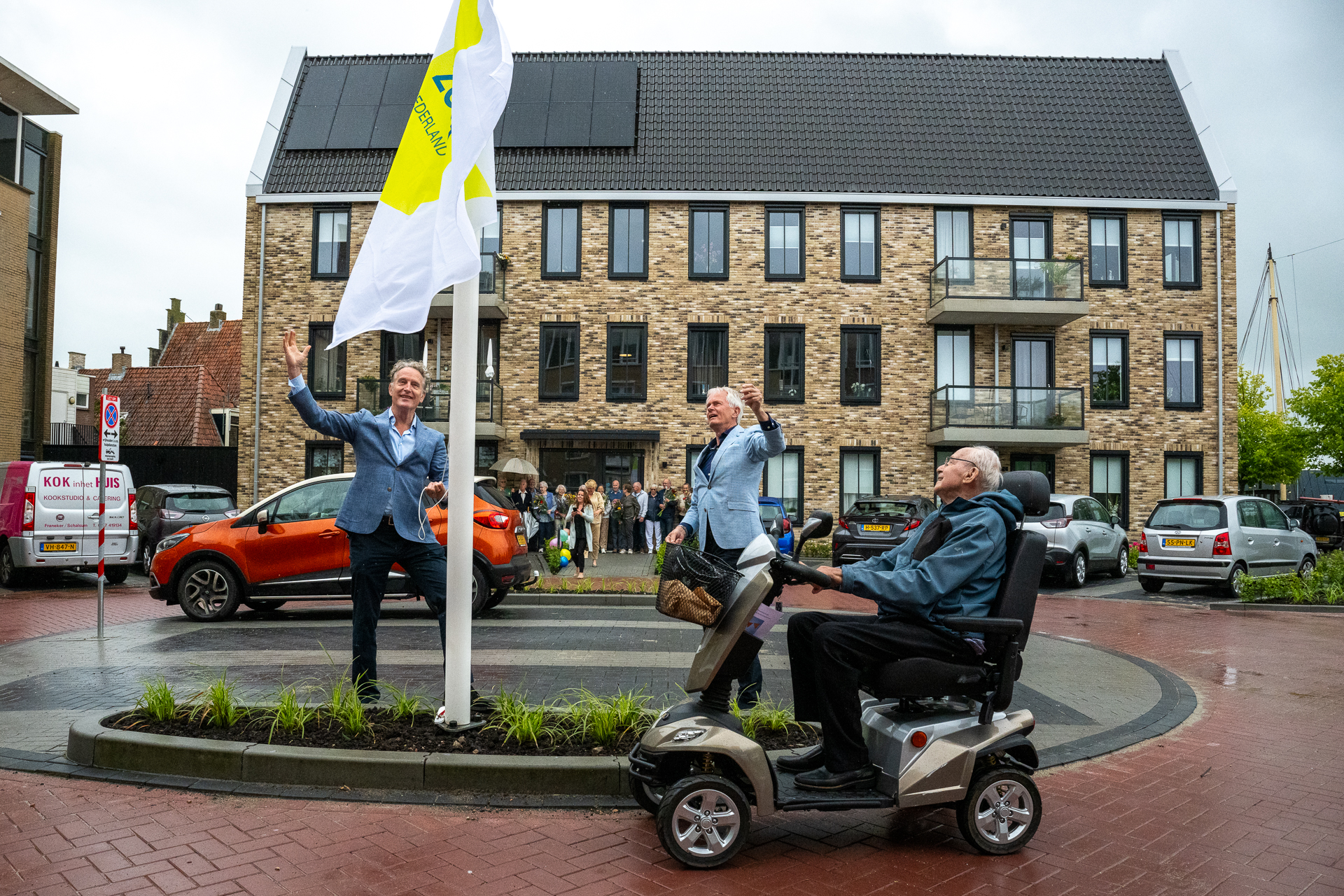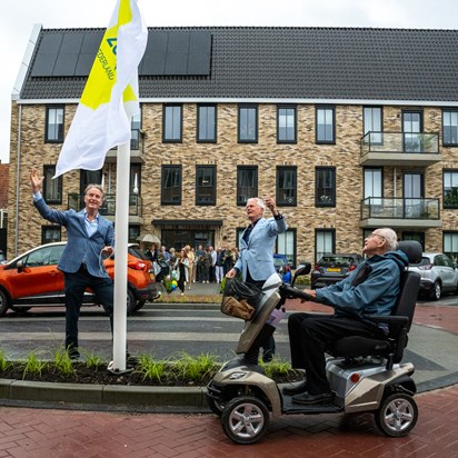 Vandaag is gevierd dat de negen nieuwbouwappartementen, onderdeel van wooncomplex Theresia in Franeker, in gebruik zijn genomen. Wethouder Kees Arendz van gemeente Waadhoeke en Woonzorg Nederland-bestuursvoorzitter Cees van Boven hesen symbolisch de Woonzorg Nederland-vlag. De feestelijke opening werd afgesloten met een gezamenlijke lunch.