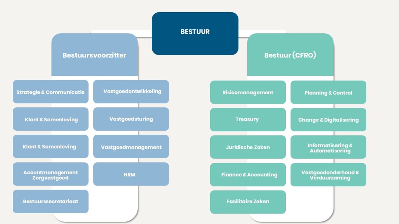 De Raad van Bestuur is verantwoordelijk voor het dagelijks bestuur van Woonzorg Nederland, in het bijzonder: