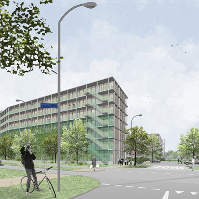 - Realisatie van een veilige fietsen- en scootmobielstalling met groendak